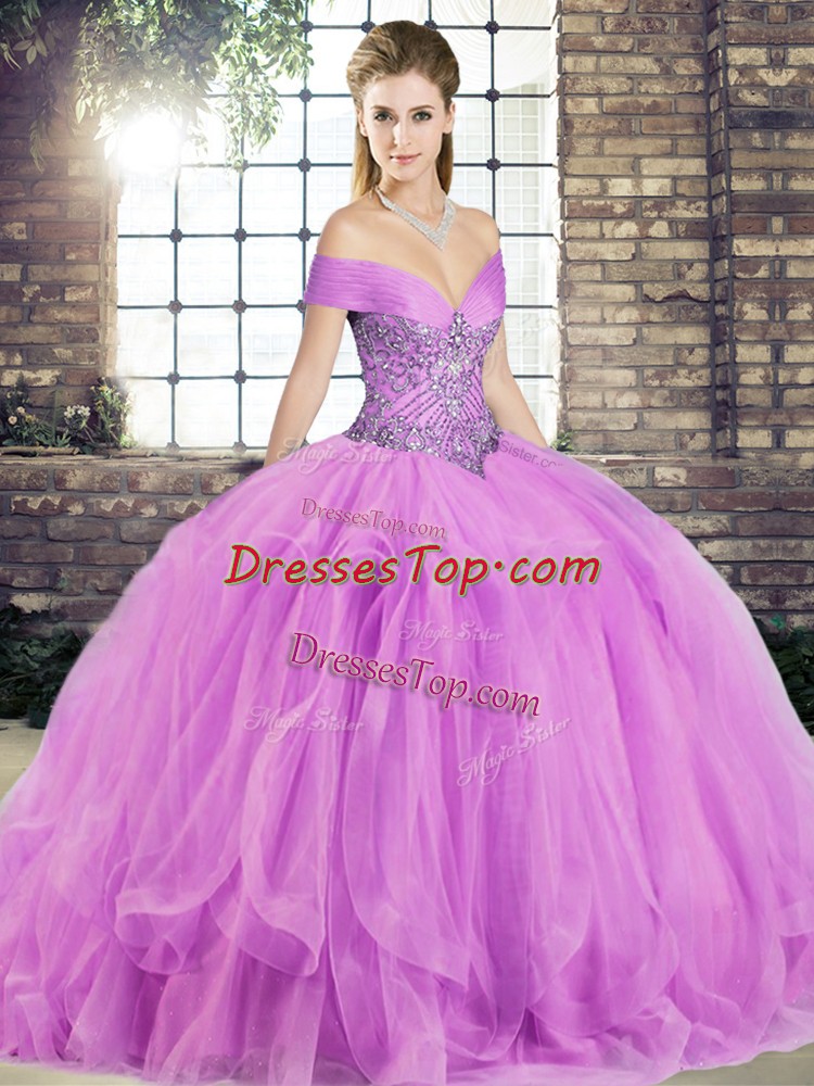 Beauteous Floor Length Ball Gowns Sleeveless Lilac Ball Gown Prom Dress Lace Up