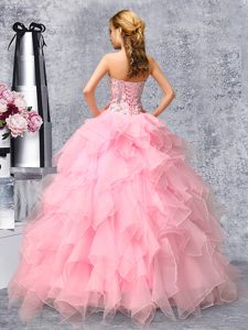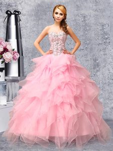 Beauteous Floor Length Ball Gowns Sleeveless Rose Pink Sweet 16 Quinceanera Dress Lace Up