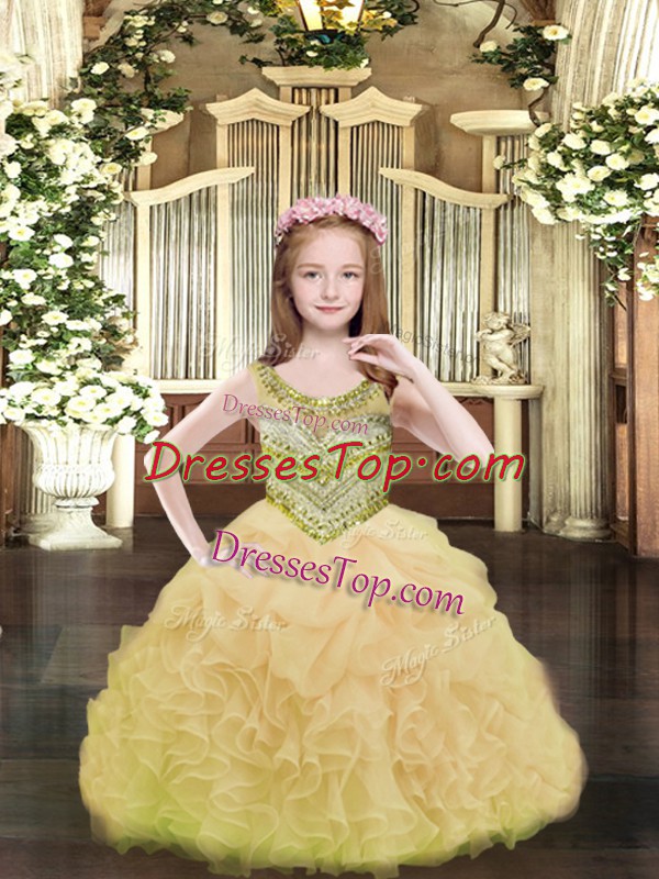 Beauteous Floor Length Gold Winning Pageant Gowns Scoop Sleeveless Lace Up