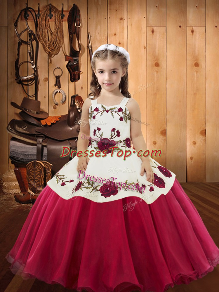 Beauteous Floor Length Red Custom Made Pageant Dress Straps Sleeveless Lace Up