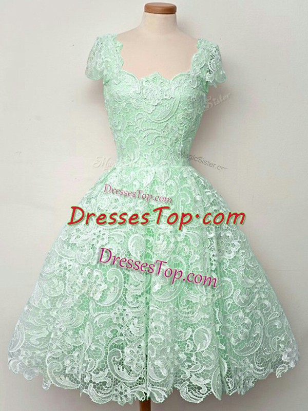 Beauteous Knee Length Apple Green Dama Dress Lace Cap Sleeves Lace