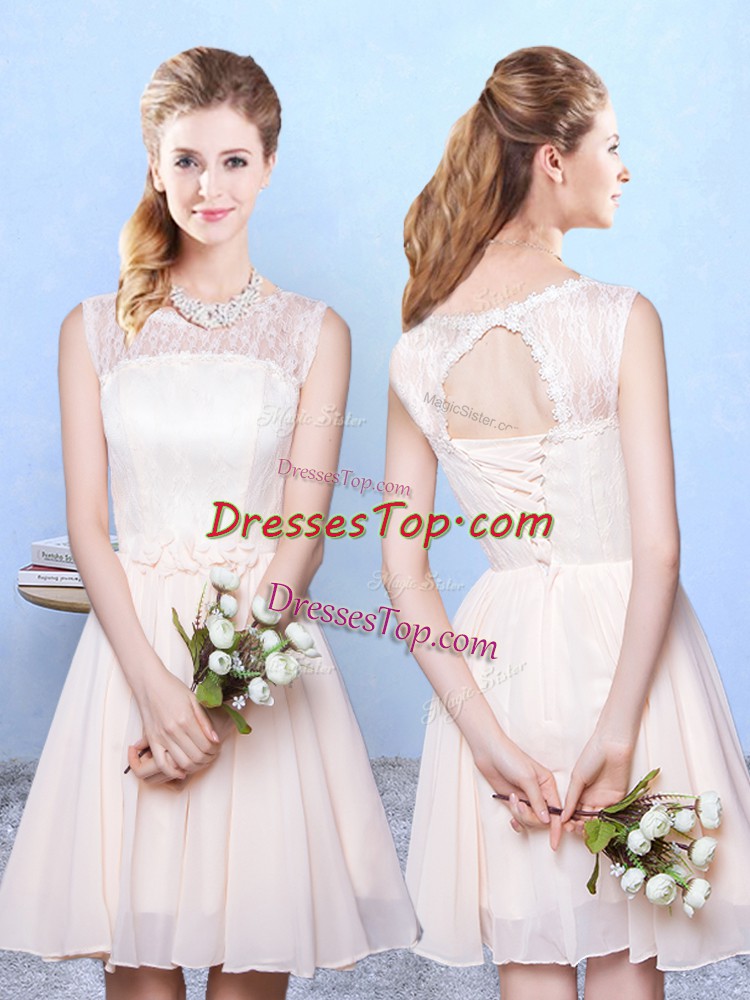 Beauteous Lace Damas Dress Champagne Lace Up Sleeveless Knee Length
