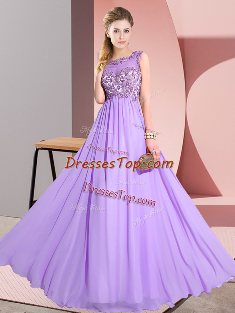Beauteous Lavender Sleeveless Chiffon Backless Quinceanera Court of Honor Dress for Wedding Party