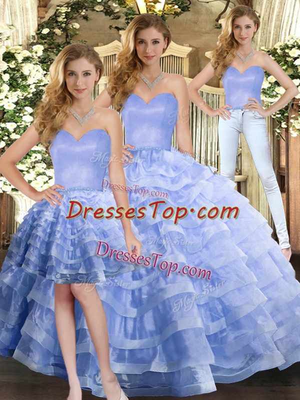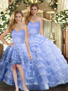 Beauteous Lavender Sweetheart Neckline Ruffled Layers Quince Ball Gowns Sleeveless Lace Up