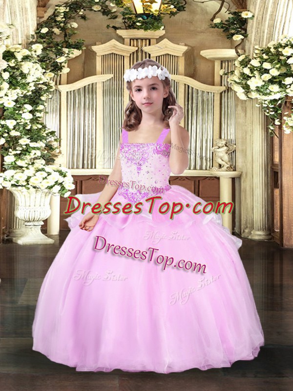 Beauteous Lilac Lace Up Kids Formal Wear Beading Sleeveless Floor Length