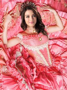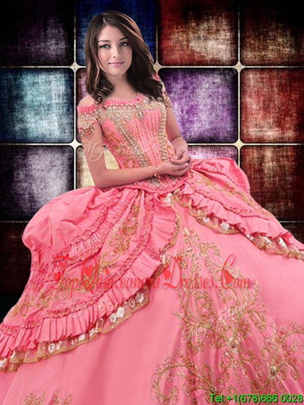 Beauteous Off the Shoulder Taffeta Sleeveless Floor Length 15 Quinceanera Dress and Beading and Embroidery and Ruffled Layers