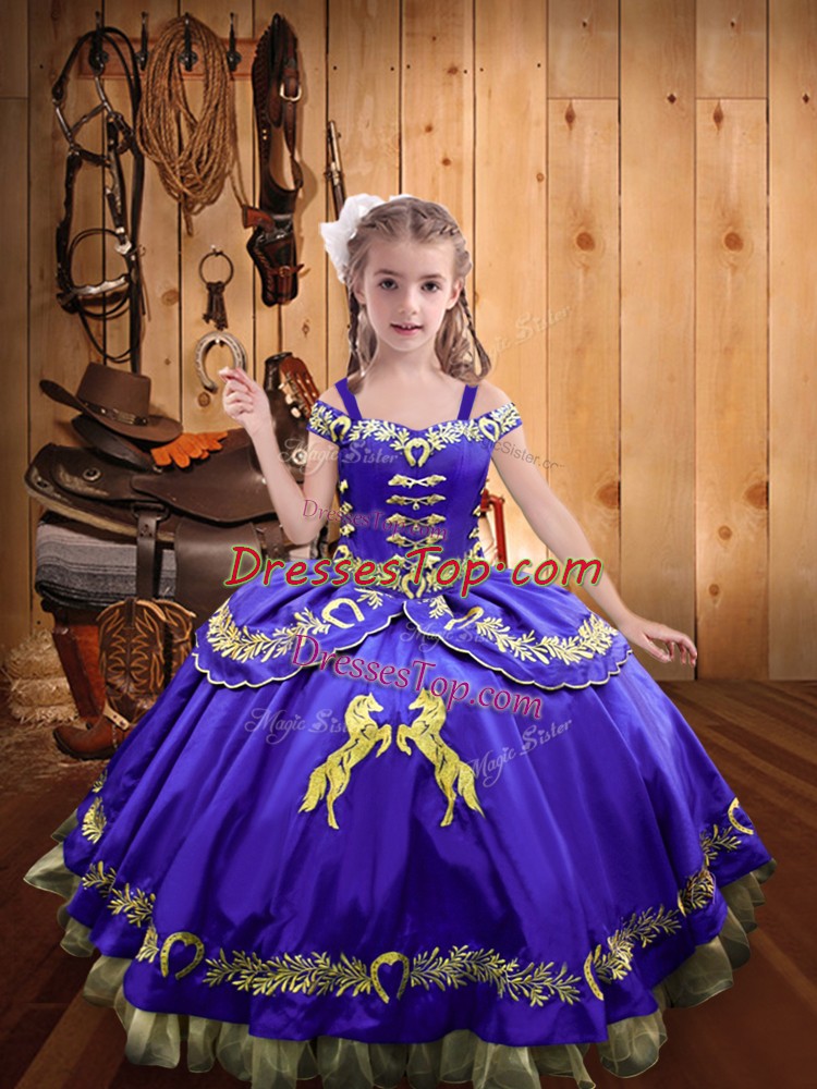 Beauteous Satin Sleeveless Floor Length Little Girls Pageant Gowns and Beading and Embroidery
