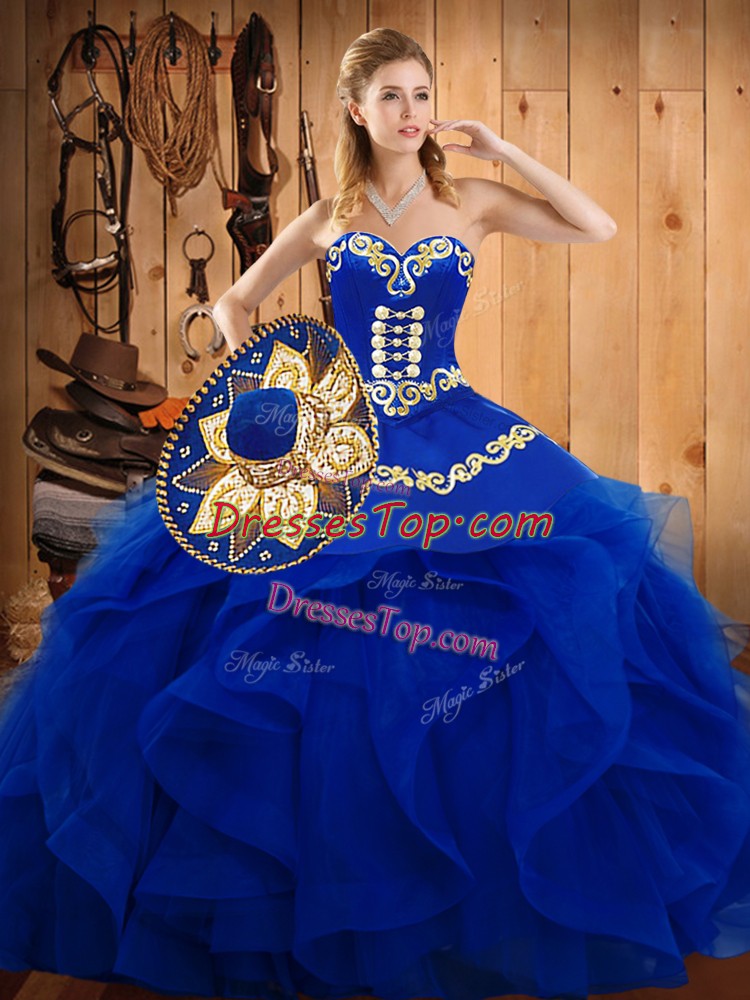 Beauteous Sleeveless Embroidery and Ruffles Lace Up Sweet 16 Dresses