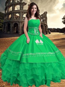 Beauteous Sleeveless Zipper Floor Length Embroidery and Ruffled Layers Ball Gown Prom Dress
