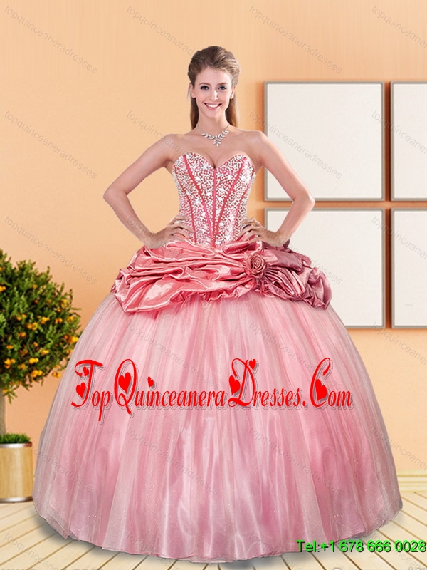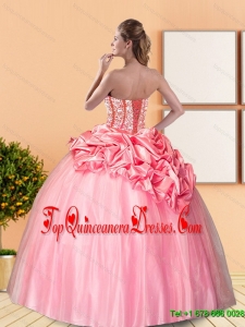 Beautiful 2015 Beading and Pick Ups Sweetheart Quinceanera Dresses in Watermelon