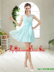 Beautiful A Line Ruched Dama Dresses in Light Blue