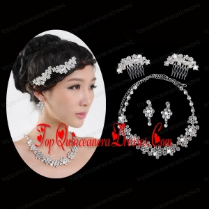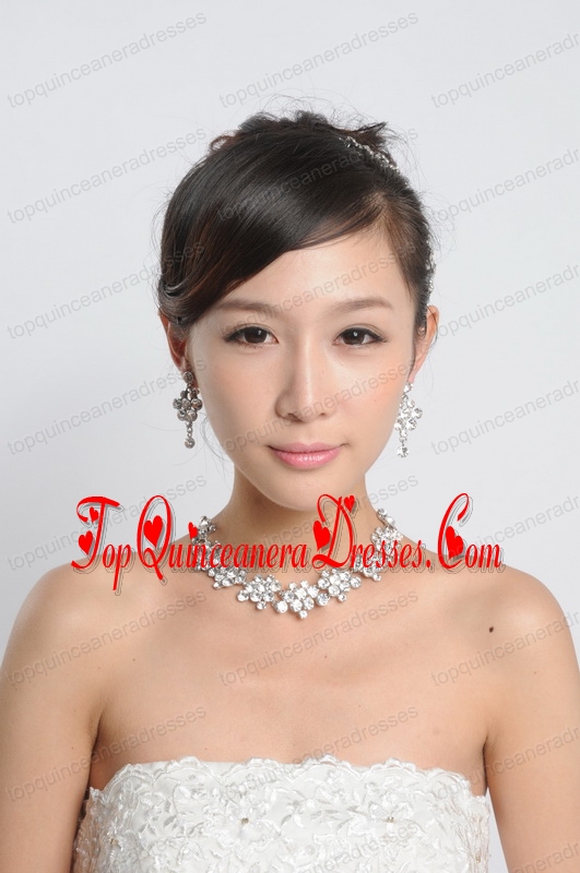 Beautiful Alloy With Rhinestone Anniversary Jewelry Set Including Necklace Earrings And Jewelry Comb