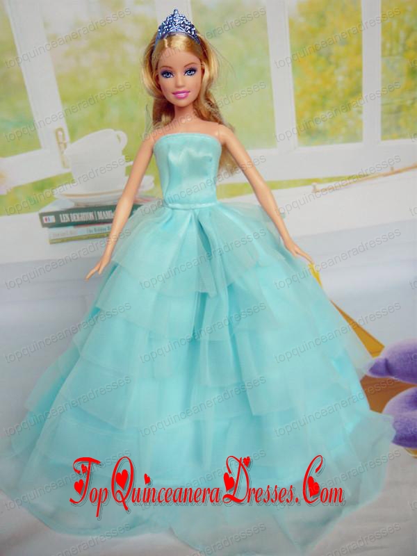 Beautiful Aqua Blue Party Clothes for Noble Barbie Doll Tulle
