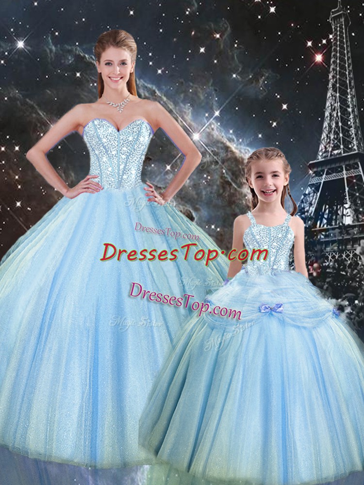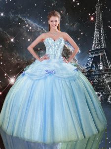 Beautiful Baby Blue Ball Gowns Beading Quinceanera Dresses Lace Up Tulle Sleeveless Floor Length