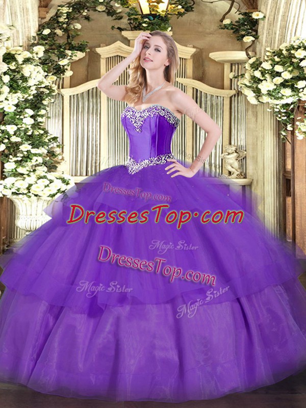 Beautiful Ball Gowns Vestidos de Quinceanera Lavender Sweetheart Tulle Sleeveless Floor Length Lace Up