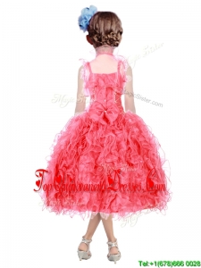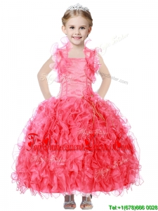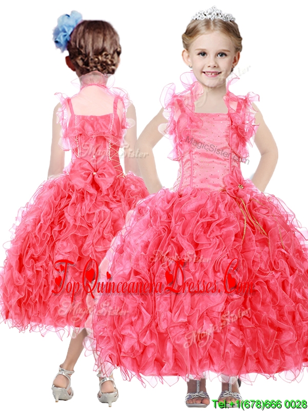Beautiful Beaded and Ruffled Straps Mini Quinceanera Dress in Coral Red