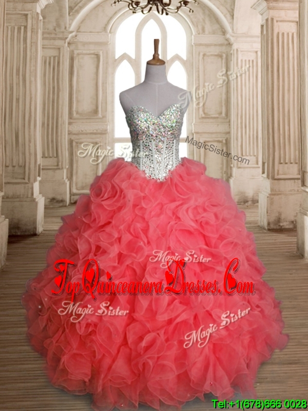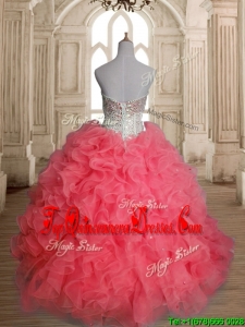 Beautiful Beaded Bodice and Ruffled Quinceanera Dress in Watermelon Red