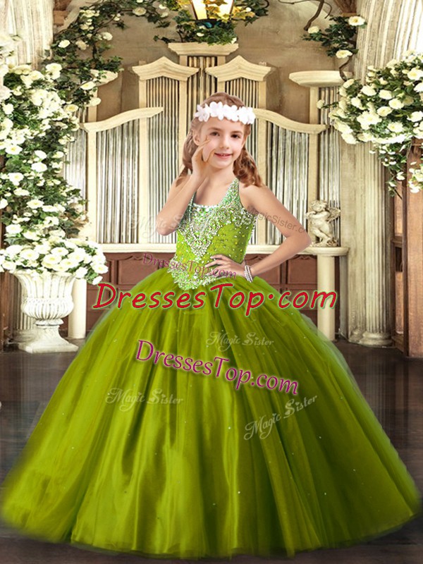 Beautiful Beading Pageant Dress for Teens Olive Green Lace Up Sleeveless Floor Length