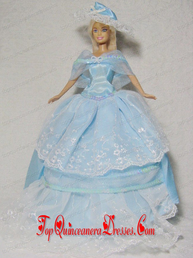 Beautiful Blue Gown With Embroidery Dress For Noble Barbie Doll