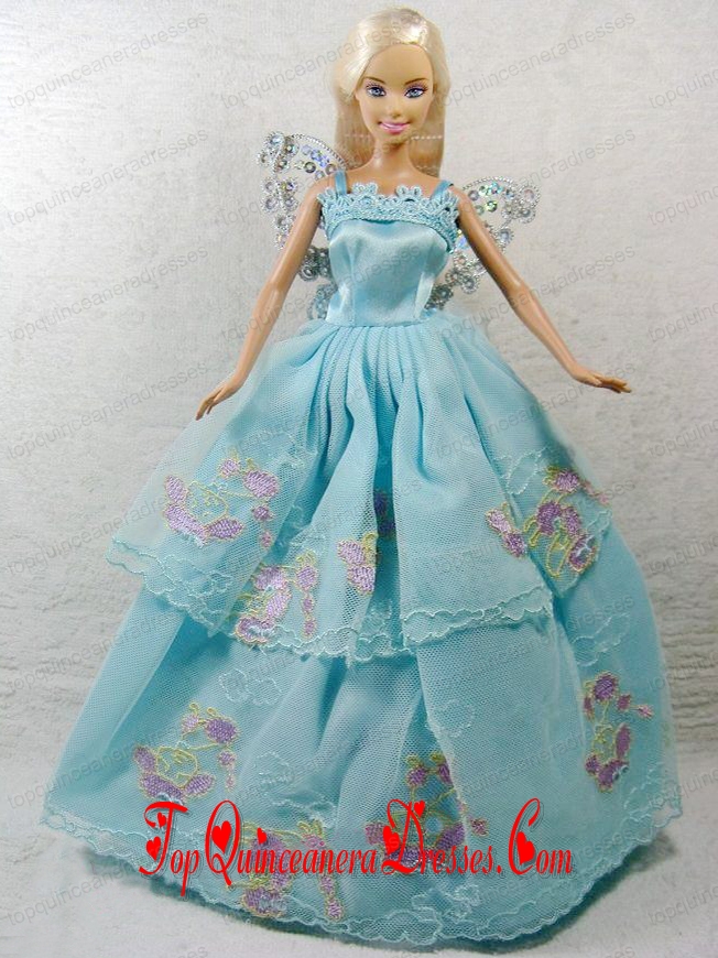 Beautiful Blue Princess Dress With Appliques Gown For Barbie Doll