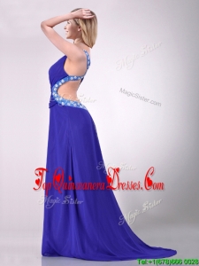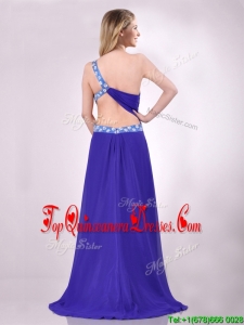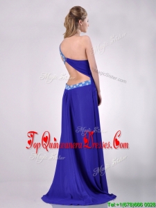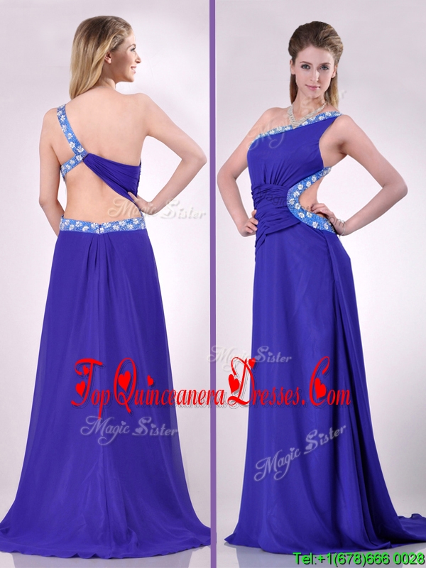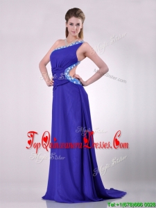Beautiful Brush Train One Shoulder Dama Dress with Criss Cross