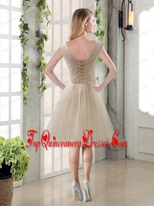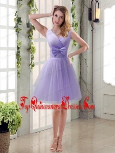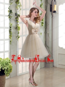 Beautiful Champagne Bowknot Princess Bridesmaid Dresses with V Neck