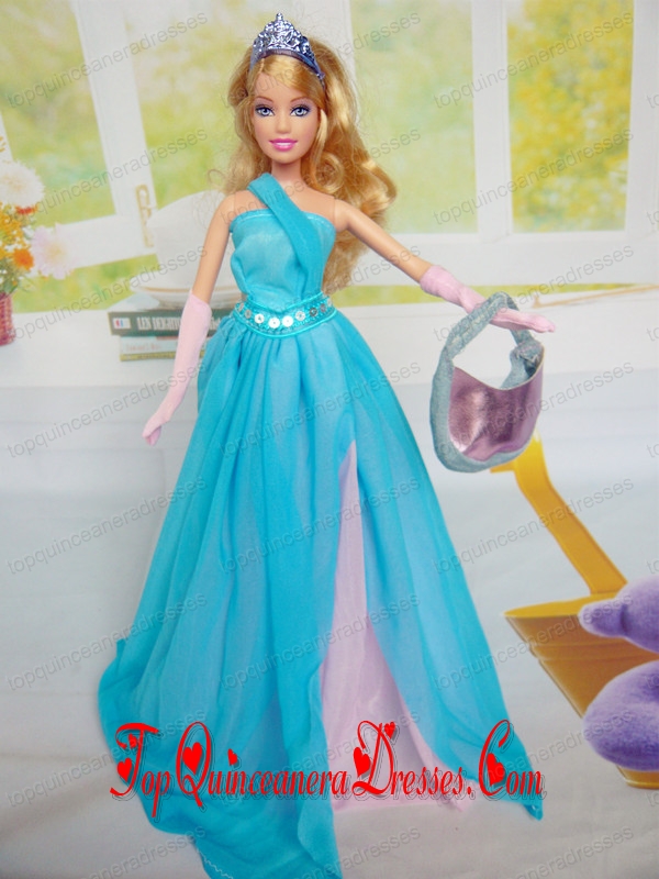 Beautiful Chiffon Blue Chiffon Party Dress for Noble Barbie Doll