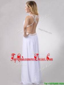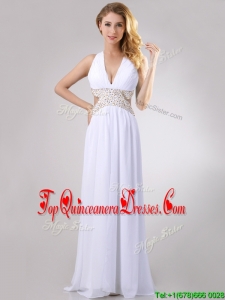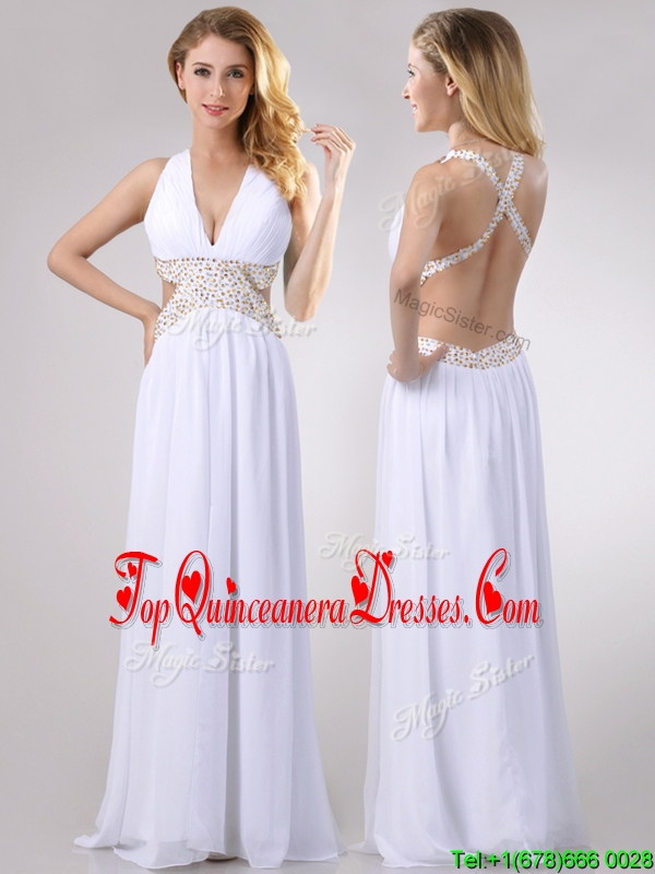 Beautiful Deep V Neckline Dama Dress with Beaded Decorated Criss Cross