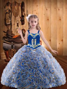 Beautiful Fabric With Rolling Flowers Sleeveless Floor Length Little Girls Pageant Dress and Embroidery and Ruffles