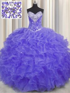 Beautiful Floor Length Ball Gowns Sleeveless Lavender Quinceanera Gown Lace Up