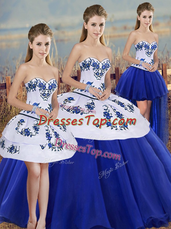 Beautiful Floor Length Royal Blue Quinceanera Gowns Tulle Sleeveless Embroidery and Bowknot