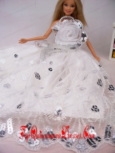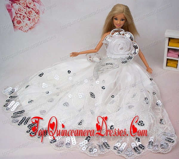Beautiful Hand Made Flower Sequin Barbie Doll Dress