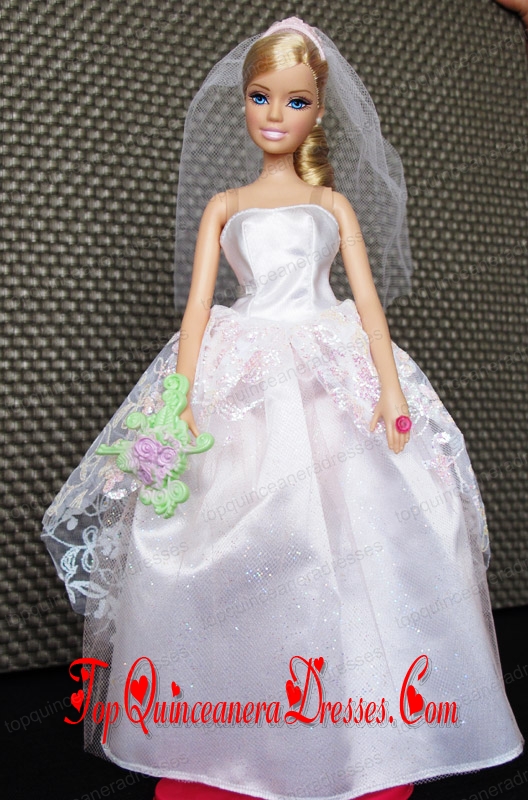 Beautiful Handmade Pink Barbie Tulle Wedding Dress For Barbie Doll