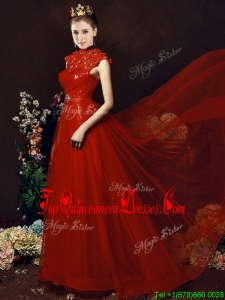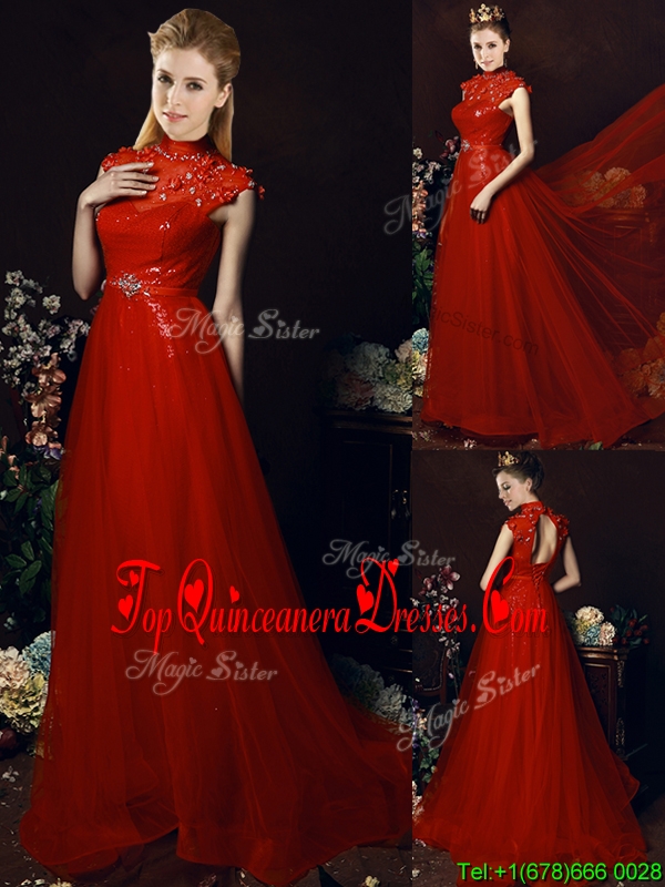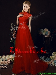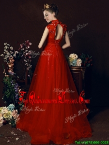 Beautiful High Neck Open Back Beaded Quinceanera Dama Dress with Brush Train