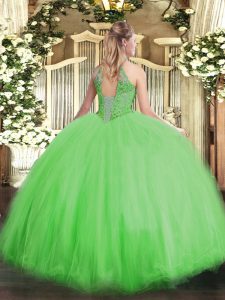 Beautiful Lavender Ball Gowns Beading Quince Ball Gowns Lace Up Tulle Sleeveless Floor Length