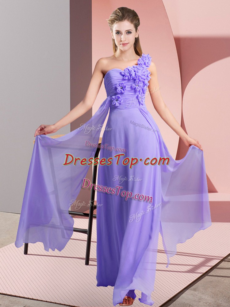 Beautiful Lavender Sleeveless Floor Length Hand Made Flower Lace Up Vestidos de Damas