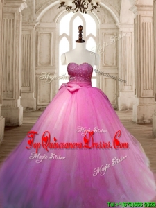 Beautiful Lavender Tulle Quinceanera Dress with Beading and Bowknot
