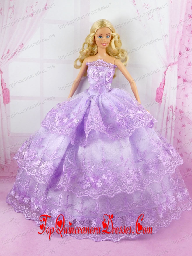 Beautiful Lilac Gown With Lace Dress For Noble Barbie