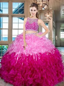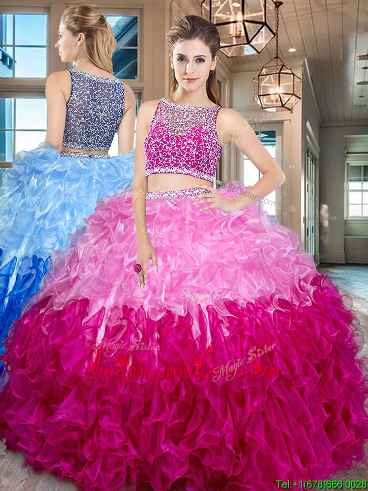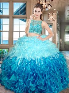 Beautiful Multi-color Organza Side Zipper Bateau Sleeveless Floor Length Sweet 16 Dresses Beading and Ruffles