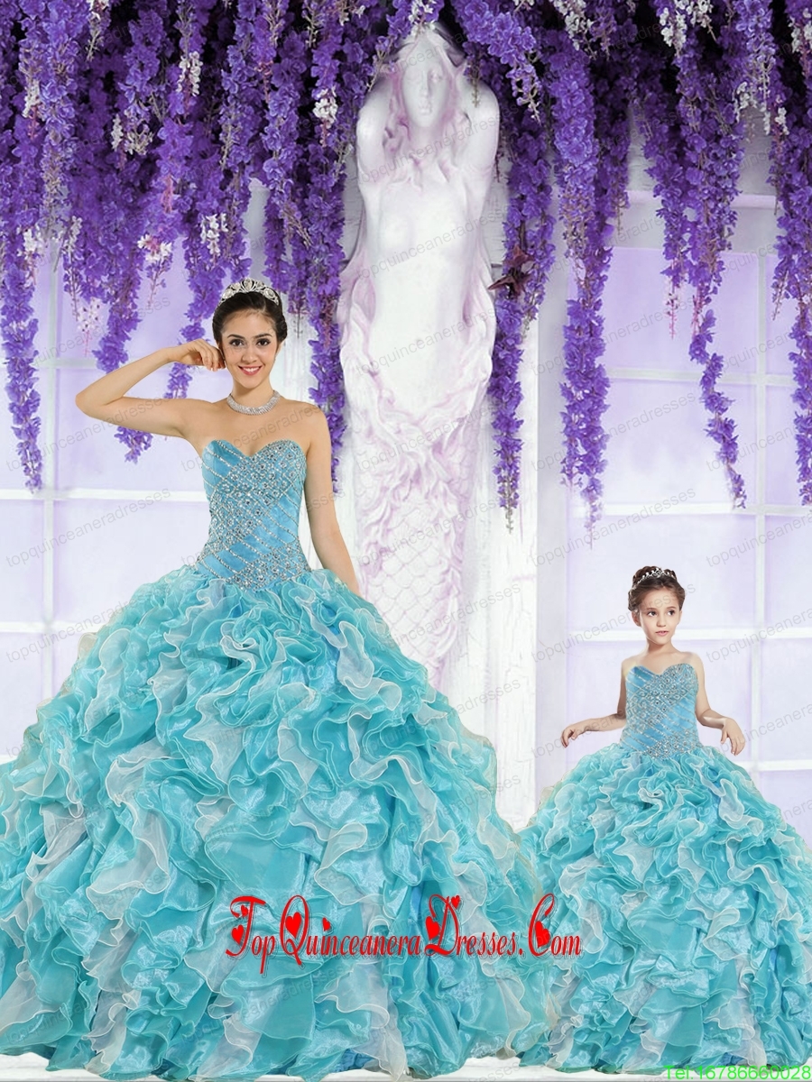Beautiful Organza Beading and Ruffles Princesita Dress in Aqua Blue