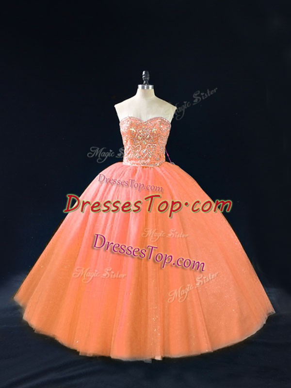 Beautiful Peach Sweetheart Lace Up Beading Sweet 16 Quinceanera Dress Sleeveless