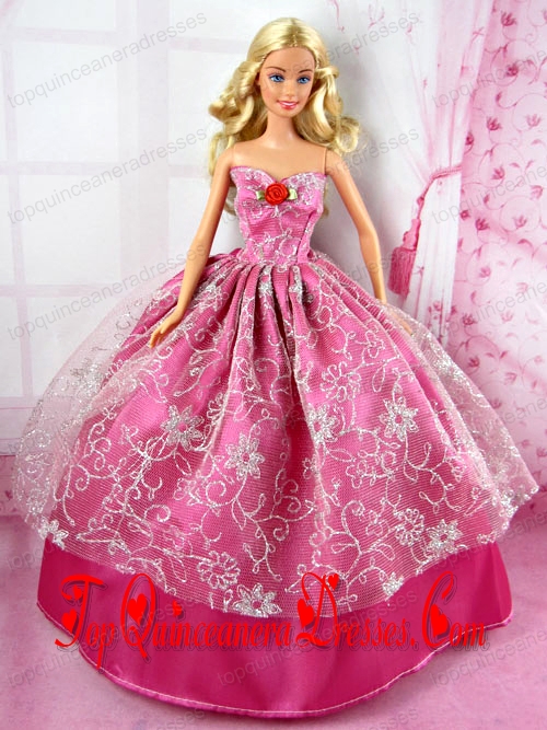 Beautiful Red Party Tulle Clothes Fashion Dress Hot Pink for Noble Barbie Doll