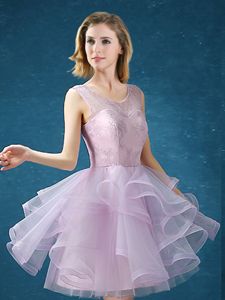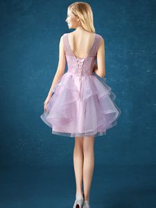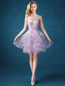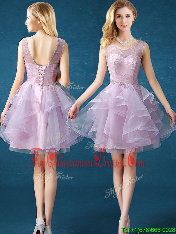 Beautiful Scoop Organza and Tulle Sleeveless Knee Length Court Dresses for Sweet 16 and Lace