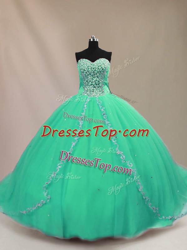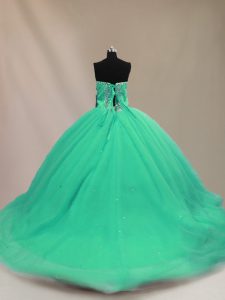 Beautiful Sleeveless Court Train Beading Lace Up 15 Quinceanera Dress