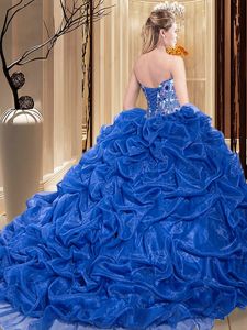 Beautiful Sleeveless Embroidery and Pick Ups Lace Up 15 Quinceanera Dress with Fuchsia Court Train