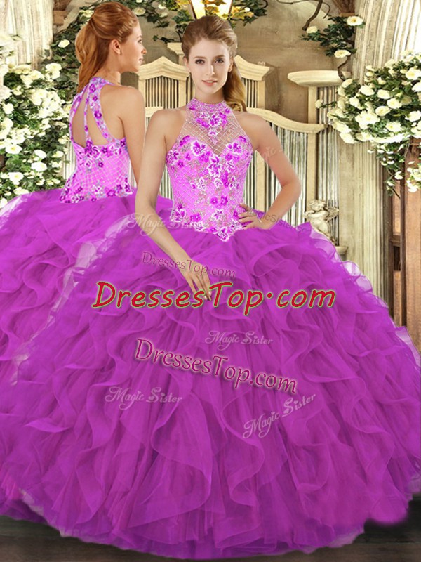 Beautiful Sleeveless Lace Up Floor Length Beading and Embroidery and Ruffles Quinceanera Gowns