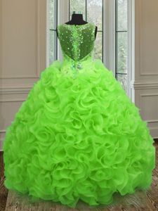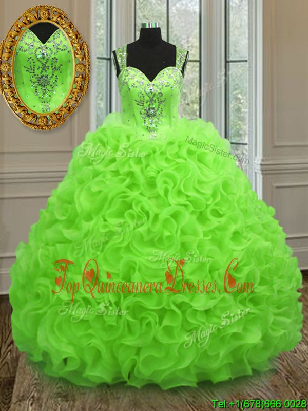 Beautiful Sleeveless Zipper Floor Length Beading and Ruffles Sweet 16 Quinceanera Dress