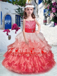 Beautiful Spaghetti Straps New Arrival Kid Pageant Dresses with Beading and Ruffled Layers