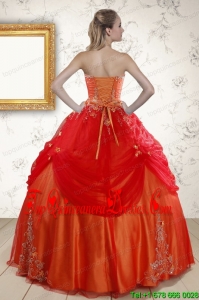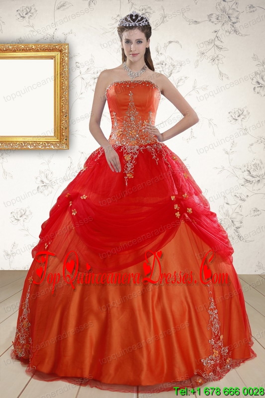 Beautiful Strapless Appliques Sweet 16 Dresses in Orange Red