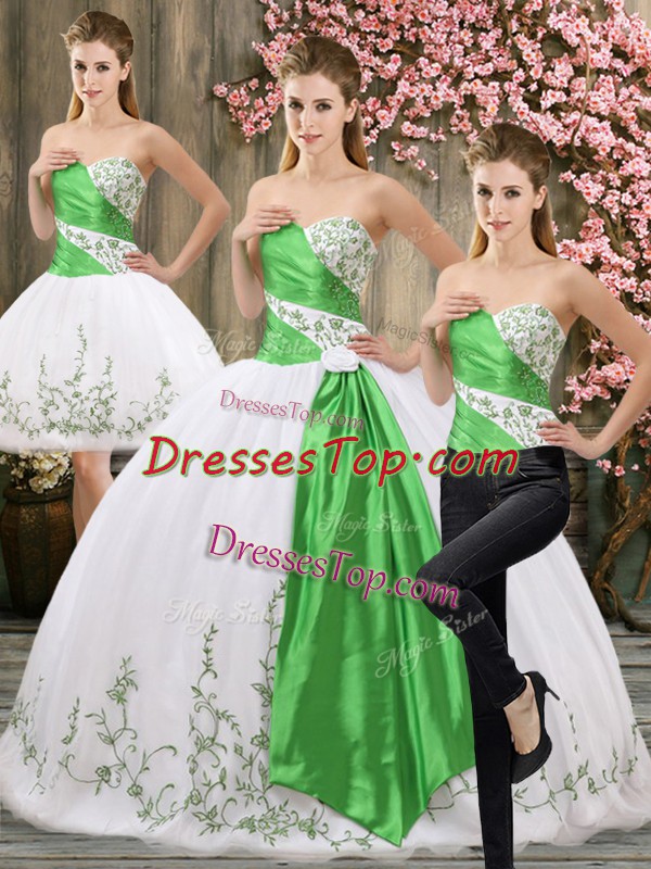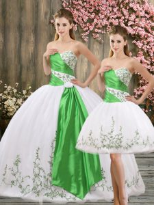 Beautiful Sweetheart Sleeveless Organza Quince Ball Gowns Embroidery and Belt Lace Up